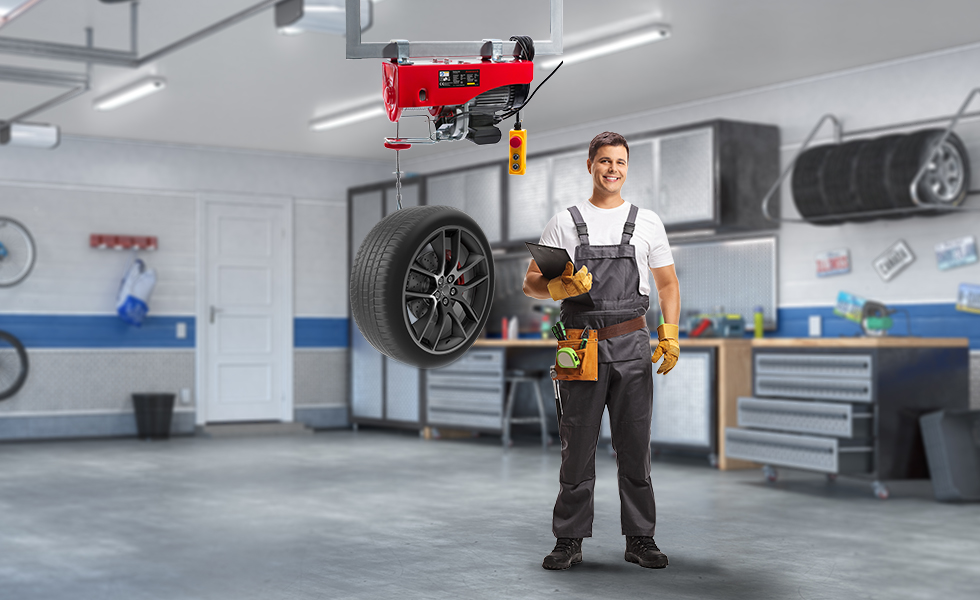 Il paranco elettrico AREBOS è l'aiuto ideale nella vostra officina. Consente di sollevare e spostare facilmente carichi in spazi ristretti.